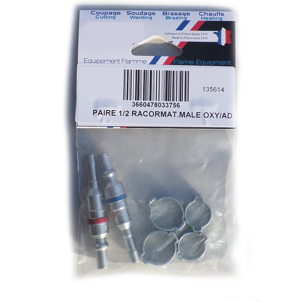 Paire de 1/2 RACORMATIC mâle OXY et GAZ sortie douille mixte 6,3x12 / 10x17