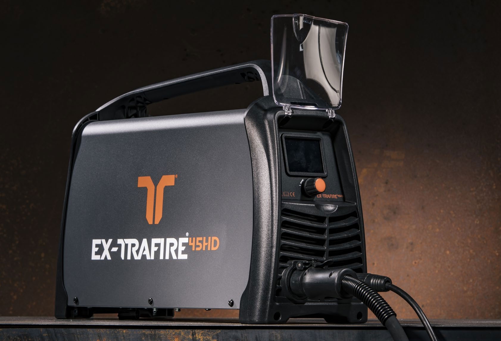 Le Plasma EX-TRAFIRE 45HD- 230V est un poste de découpe 45 A avec un facteur de marche de 80% @ 45A.