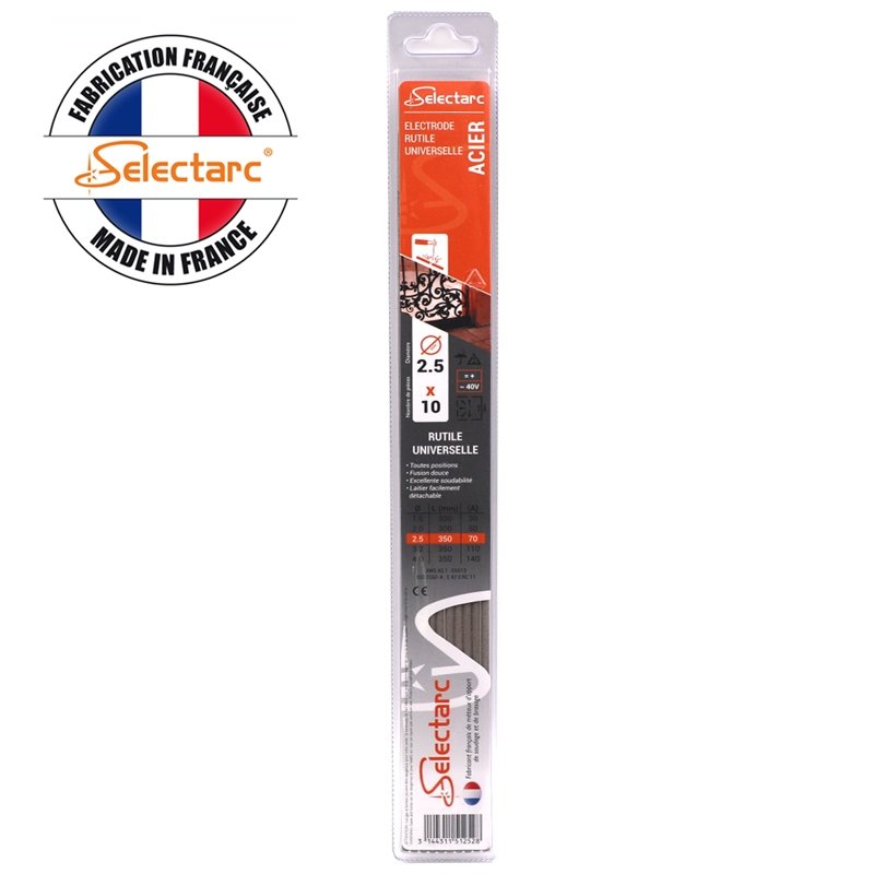 10 Electrodes ACIER de type rutile - D 2.5 mm - L 350 mm