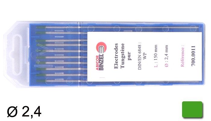10 électrodes 150 mm, tungstène pur, Ø 2,4 mm - Vert
