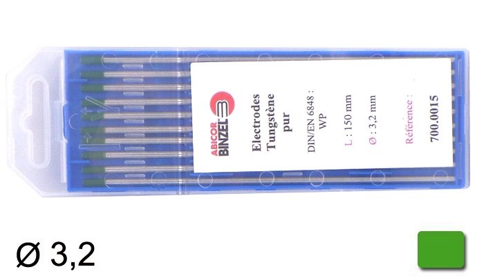 10 électrodes 150 mm, tungstène pur, Ø 3,2 mm - Vert