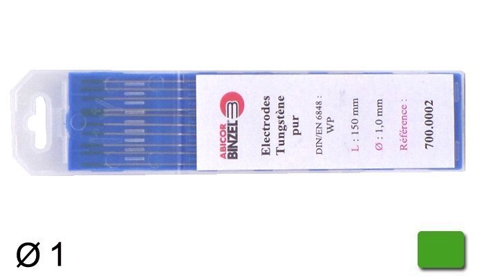 10 électrodes 150 mm, tungstène pur, Ø 1 mm - Vert