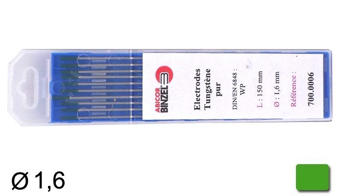 10 électrodes 150 mm, tungstène pur, Ø 1,6 mm - Vert