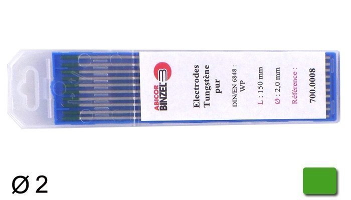10 électrodes 150 mm, tungstène pur, Ø 2 mm - Vert